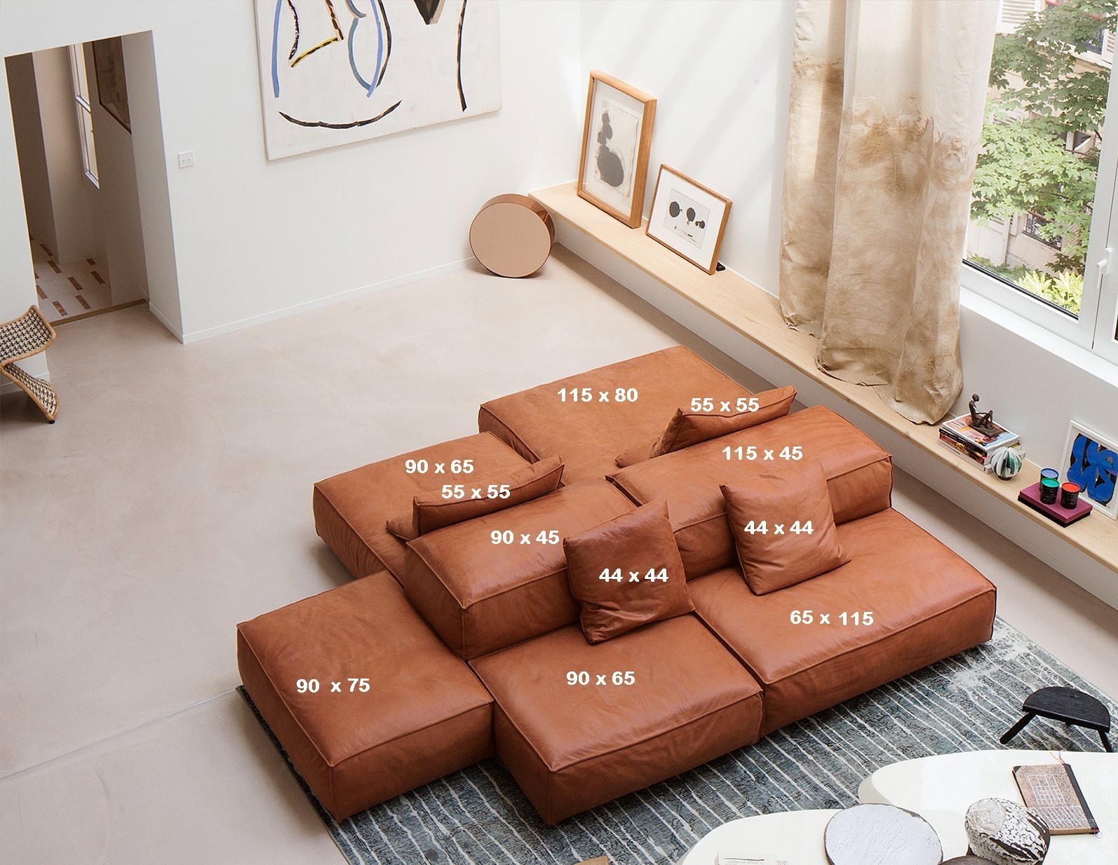 Grande divano con doppio lato modello Arcadia in pelle . Le misure degli elementi sono studiati per combinare in diversi modi , anche per creare un comodo luogo di riposo . Il divano Arcadia è composto da unità separati componibile a volonta .Sedute e spalliere sono fatti da gomma poliuretano comodo e rilassante. Tutti i cuscinetti sono inclusi nel prezzo .Il divano nella foto è fatto con pelle primo fiore ( Categria Natural ) colore cuoio . Trasporto incluso nel prezzo.