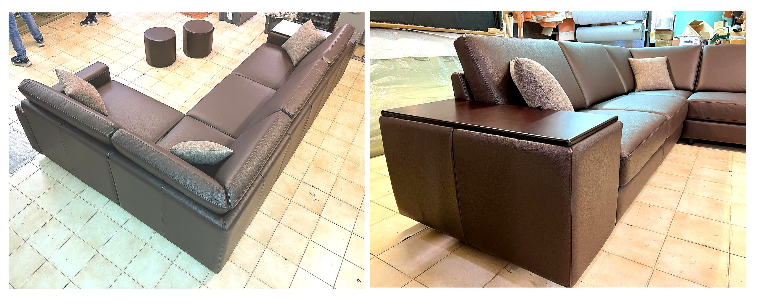 Grande divano angolare Roma 200 x 300 cm interamenter in pelle doppio spessore colore marrone scuro
