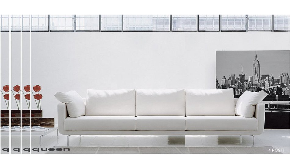 Divano noderno Modello Brooklyn 3 posti 220 cm . Basamento in acciaio inox lucido .